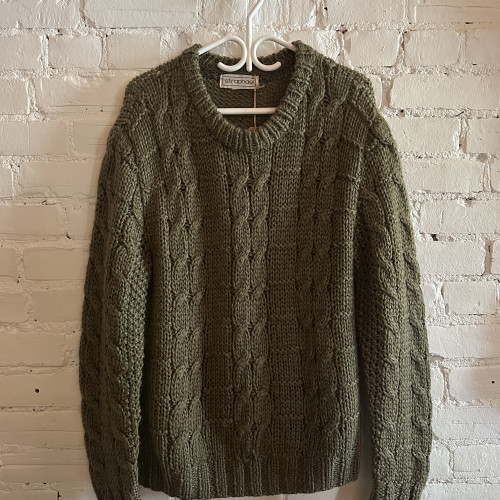 Magnifique pull vintage vert armée. 100 % laine. Taille Moyen.